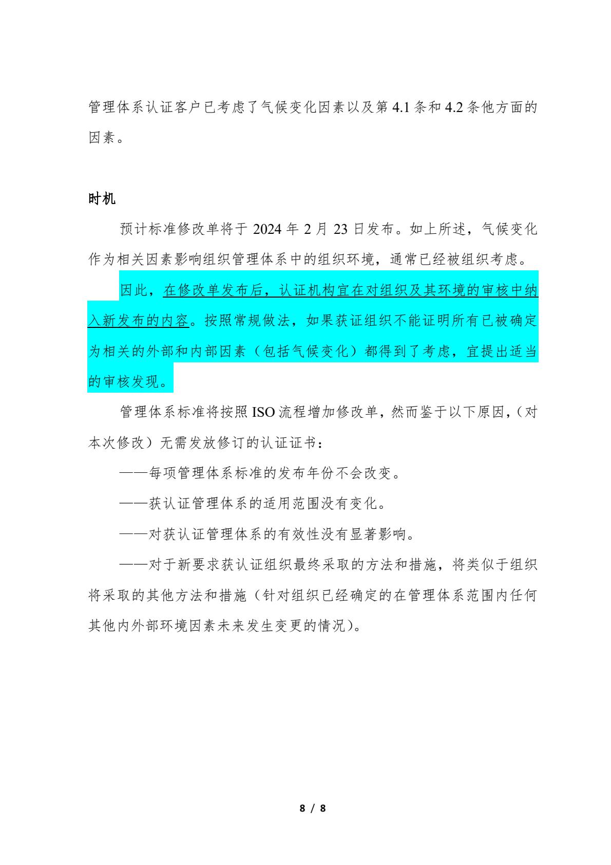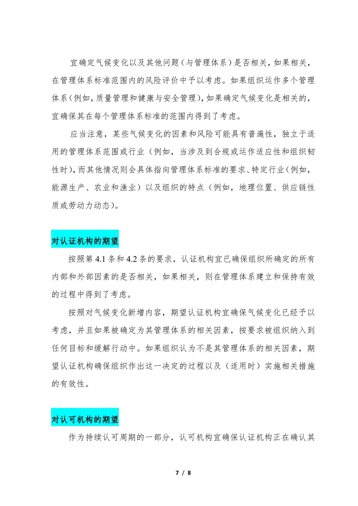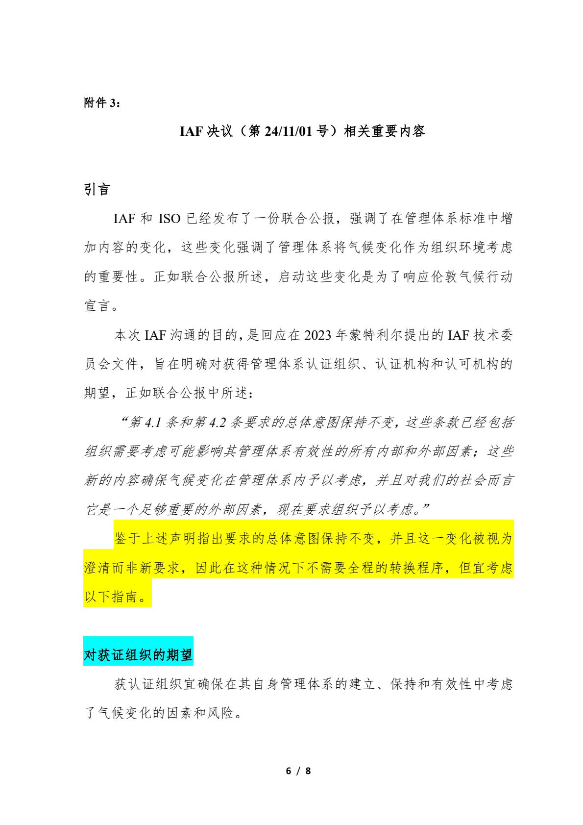 关于转发IAF和ISO在管理体系标准中增加对气候变化考虑的联合公报及相关情况的通知